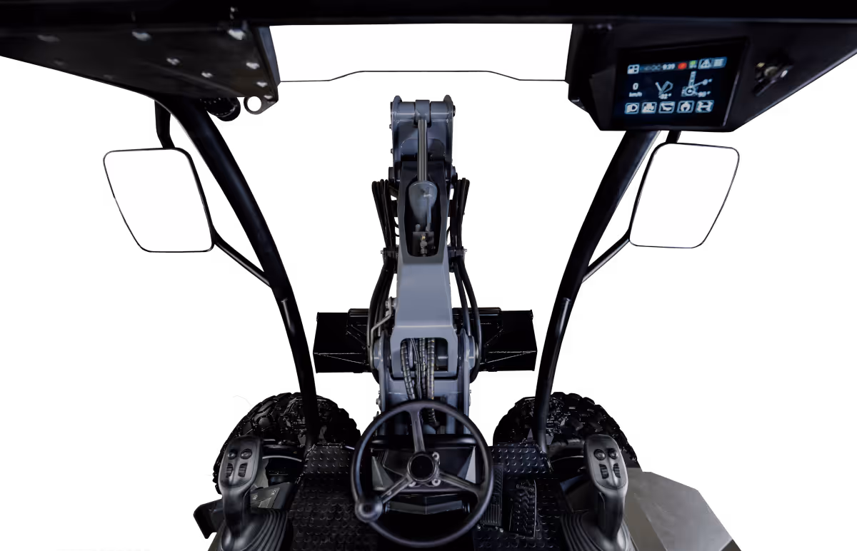 A central seating position gives you symmetrical visibility to the work tools and close surrounding, just like an articulated wheel loader, a skid steer and a tractor